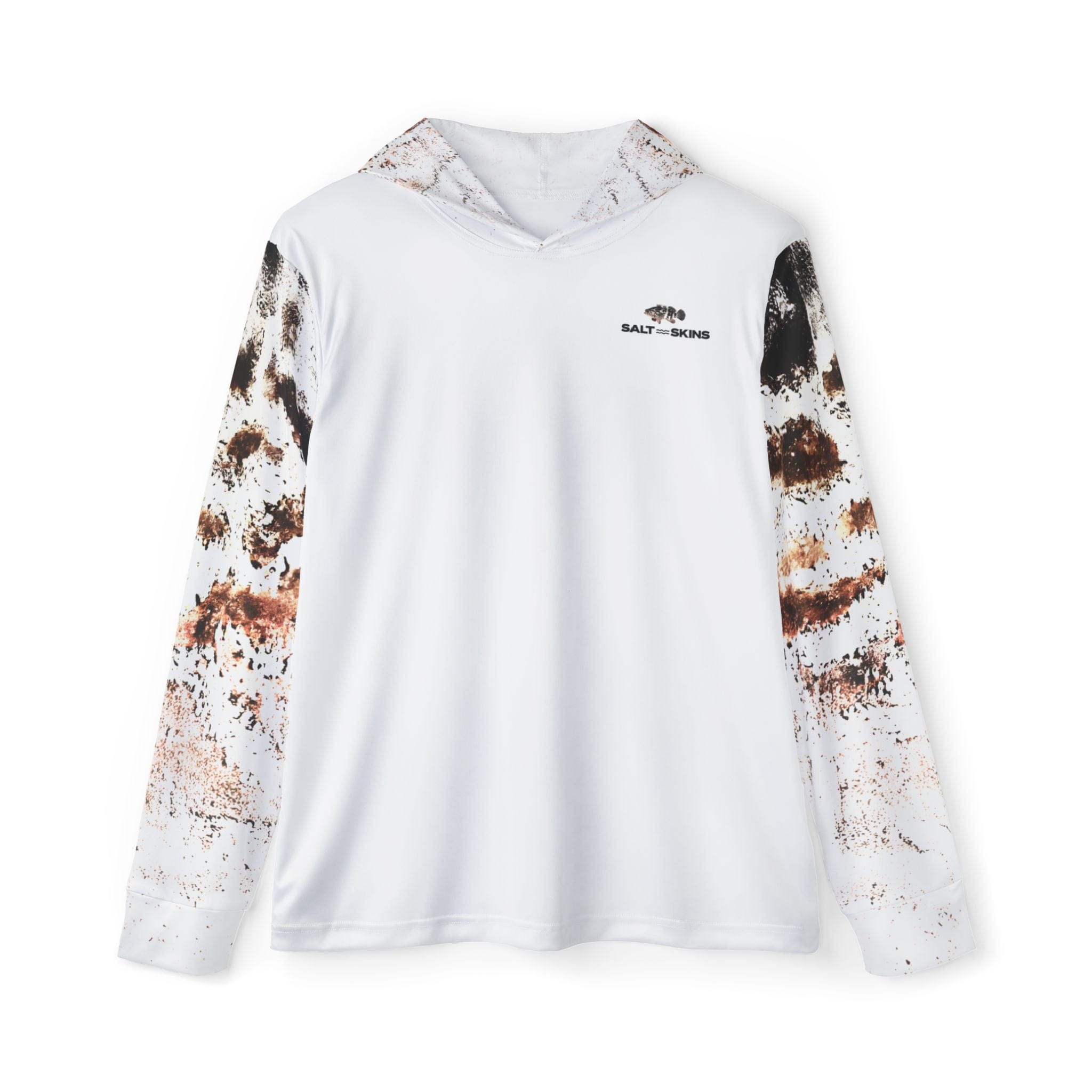 Crafted with the serious angler and ocean enthusiast in mind, this long-sleeve fishing shirt combines cutting-edge performance with authentic marine-inspired aesthetics. The 100% moisture-wicking polyester construction feels weightless against your skin, managing moisture to keep you comfortable during long days on the water. With UPF 50+ protection built into every fiber, you're shielded from harmful UVA and UVB rays, whether you're stalking the flats or exploring deeper waters.