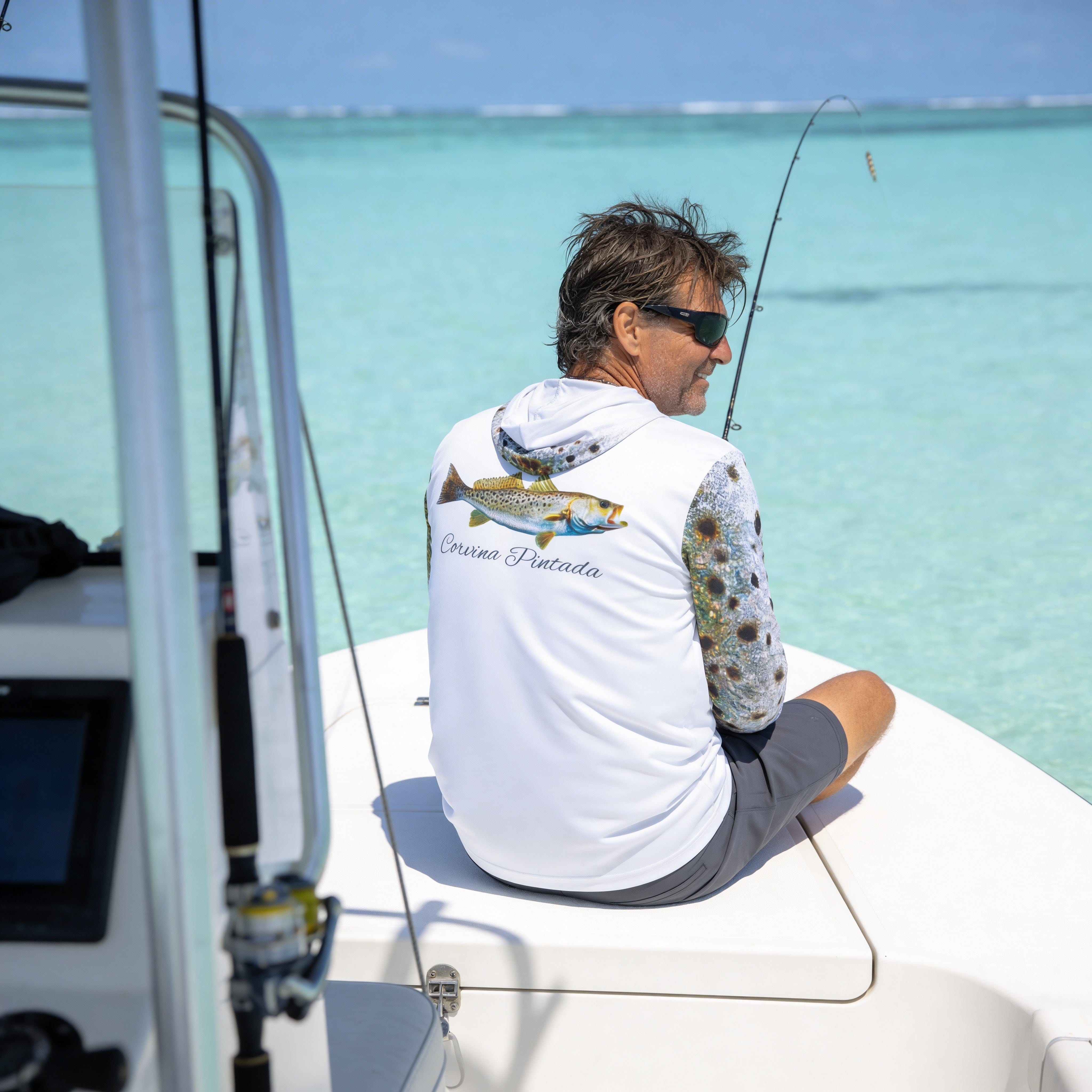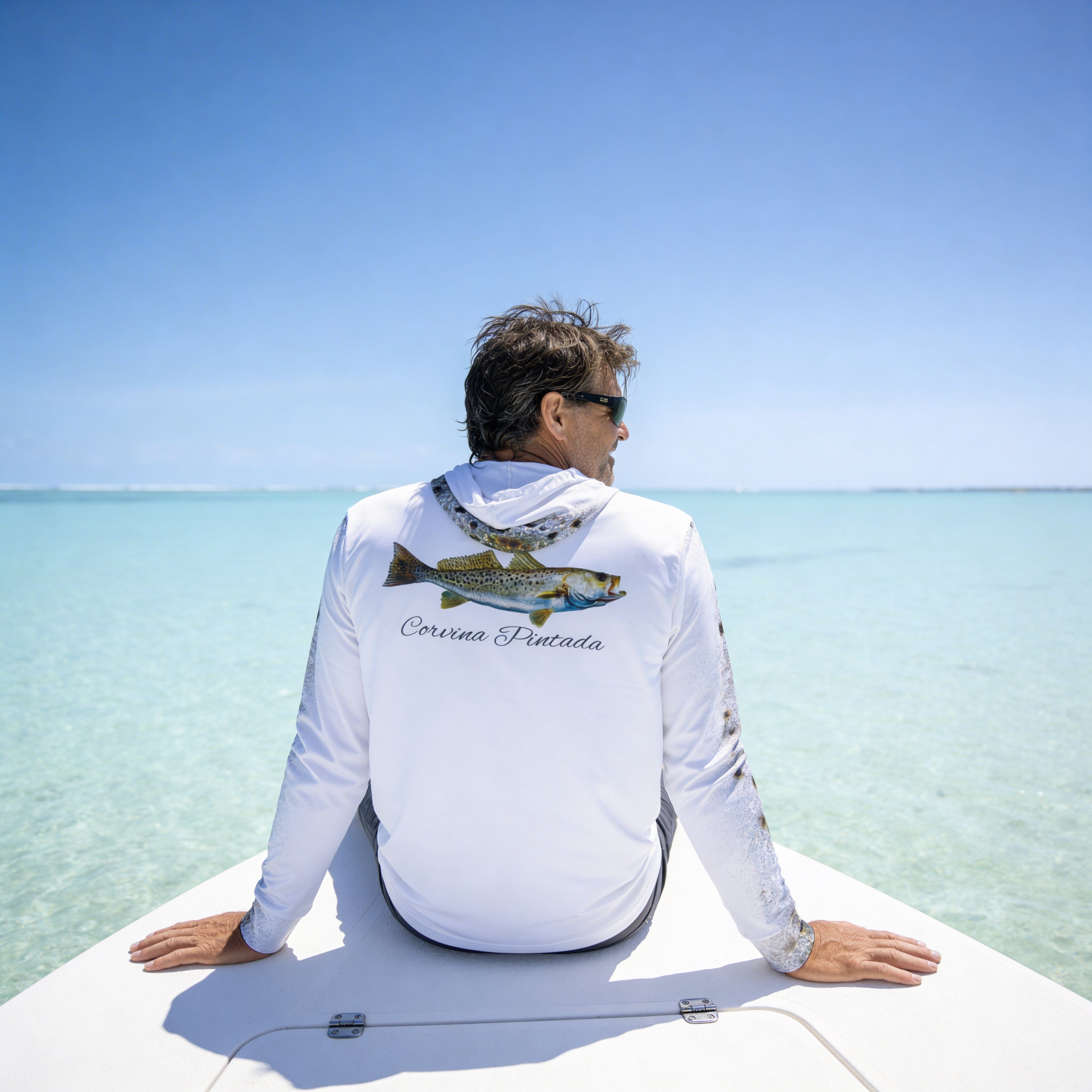 Discover the subtle elegance of Florida's most sought-after inshore species with our New Corvina Pintada or Spotted Sea Trout II Captain's Series Performance Fishing Shirt - a tribute to the ghostly beauty that glides through shallow waters. This premium garment captures the understated magnificence of the Spotted Sea Trout, showcasing the silver-gray elegance and distinctive spotted patterns that have made this species a favorite among flats fishermen.