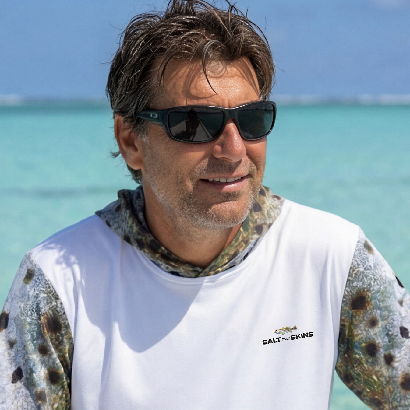 The sea trout's refined coloration serves as the inspiration behind this latest addition to Salt Skins' authentic marine collection: creating performance apparel that honors the subtle beauty of inshore waters. When Salt Skins' design team spent countless hours studying these elusive fish in their natural habitat, the sea trout's silver flanks adorned with distinctive black spots created a pattern that perfectly embodies the mystique of shallow water fishing. This signature design faithfully reproduces the mesmerizing spectrum of silver-gray tones, from bright chrome sides to darker olive backs, complemented by the iconic spotted pattern that makes these inshore predators instantly recognizable.