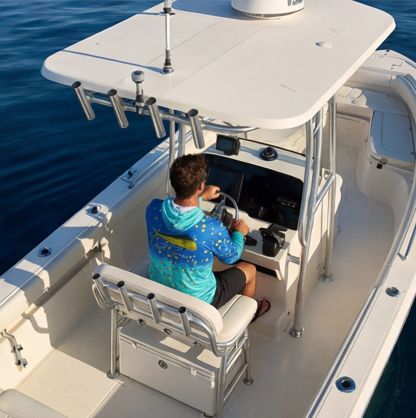 Crafted with the serious angler in mind, this long-sleeve fishing shirt combines cutting-edge performance with authentic marine-inspired aesthetics. The 100% moisture-wicking polyester construction feels weightless against your skin, managing moisture to keep you comfortable during long days on the water. With UPF 50+ protection built into every fiber, you're shielded from harmful UVA and UVB rays, whether targeting mahi on the troll or casting to visible schools.