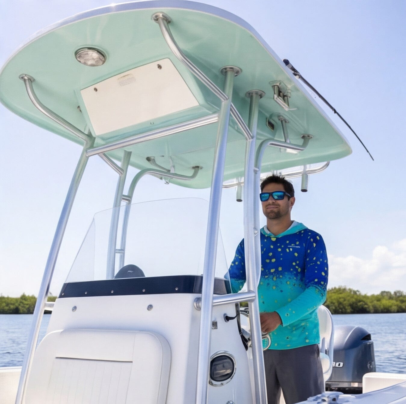 The mahi-mahi's remarkable coloration inspires Salt Skins' vision: creating authentic, high-performance apparel that celebrates the ocean's most spectacular creatures. When Salt Skins' founder first encountered these fish during an offshore expedition, their brilliant golden flanks and electric blue accents created an unforgettable impression that must be shared with fellow ocean enthusiasts. This signature pattern faithfully reproduces the mesmerizing spectrum of colors, from brilliant golden yellows to deep cerulean blues, complemented by iridescent scales that make these pelagic speedsters truly captivating.
